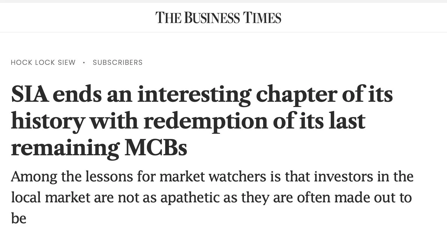 [Disclaimer: I was a holder of SIA shares and its MCBs.]