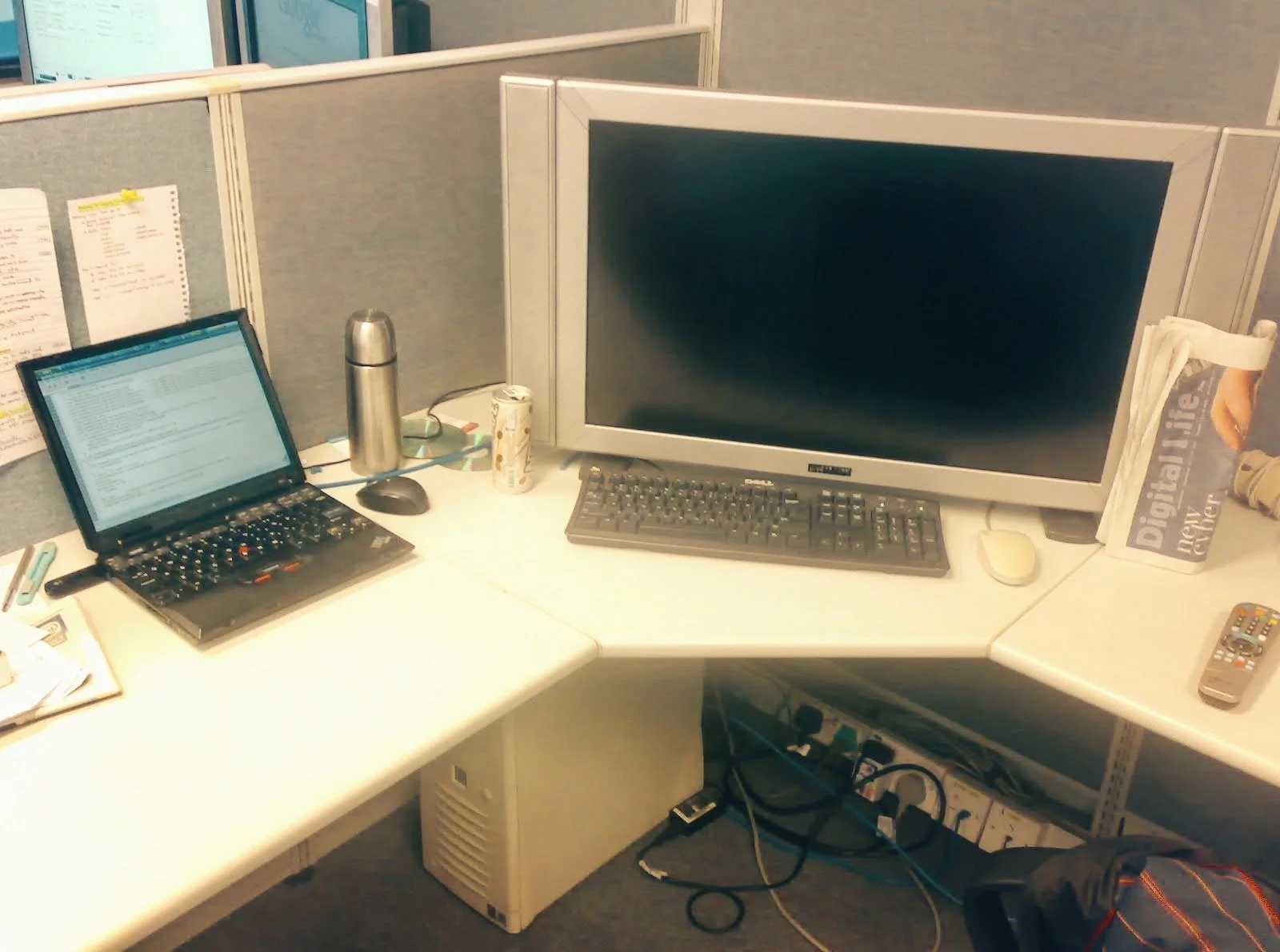 As I walked from the lifts and through the swinging glass doors, I saw my new colleagues, probably twenty-something of them, looking smart, well-dressed, some with ties, all seated behind their cubicled desks.