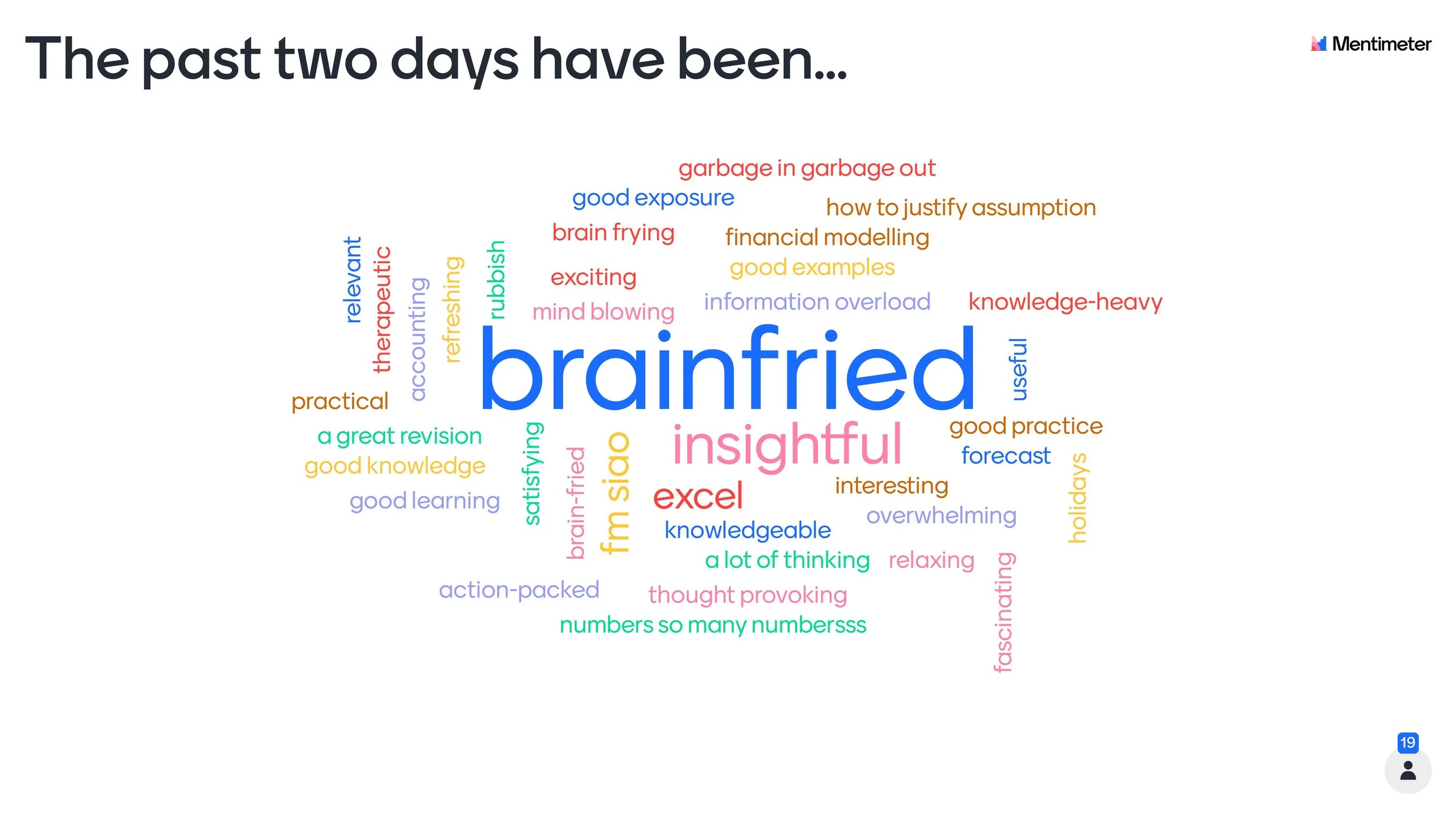 Whenever I approached the close of my financial modelling course, I always did a simple roll-call to call for feedback from everyone in the class.